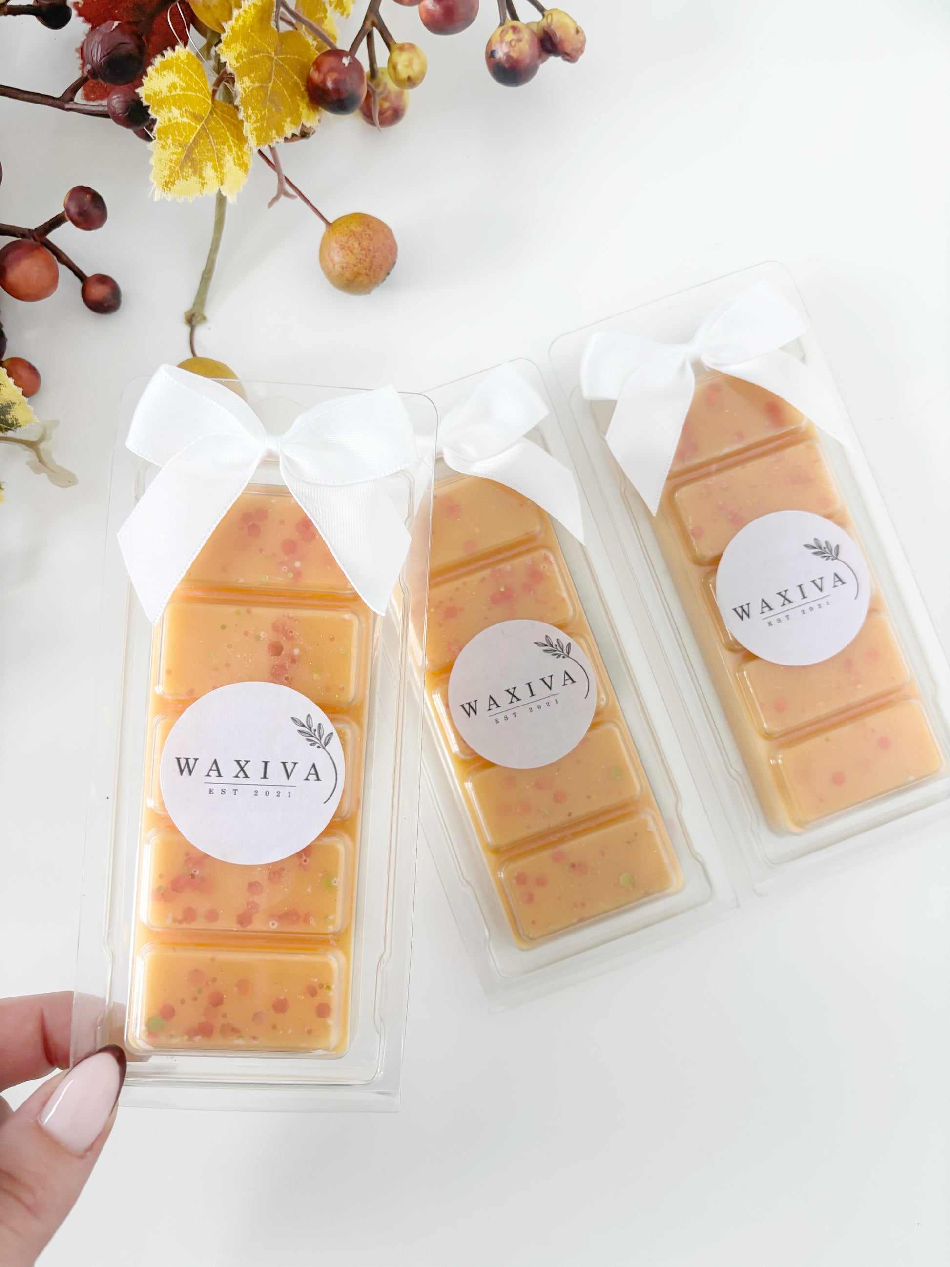 A rich and spicy pumpkin fragrance opening with top notes of juicy pumpkin, red apple and nutmeg, with a heart of warm plum, cinnamon and a creamy vanilla sweet base.